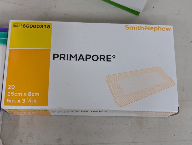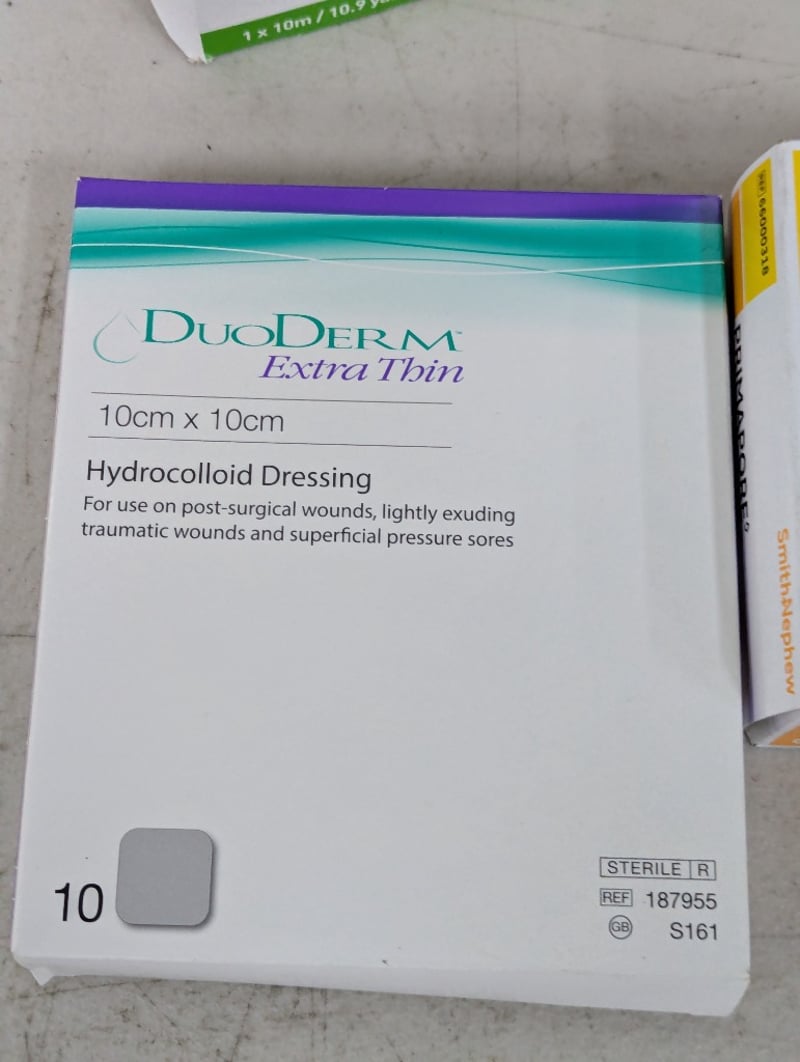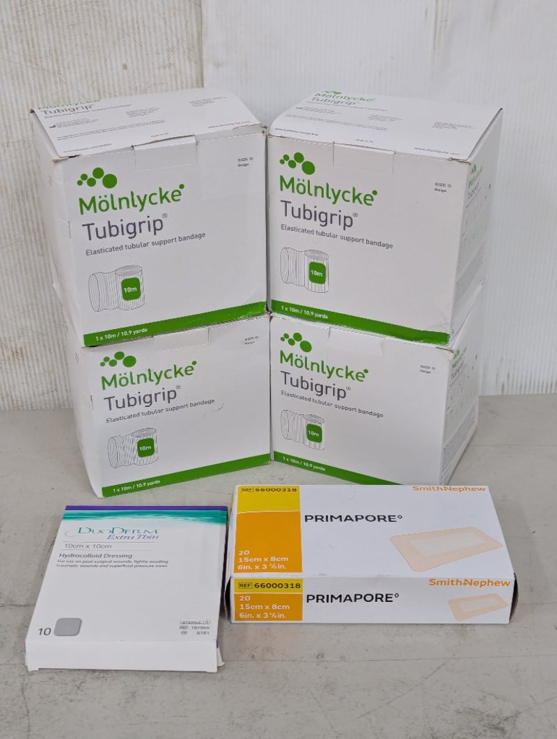 Medical supplies including Tubigrip, 10cm x 10cm Hydrocolloid Dressing and 15cm x 8cm Primapore dressingSOLD AS LOT