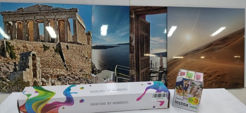Photos, Fujifilm Instax pack, painting by number paint set
