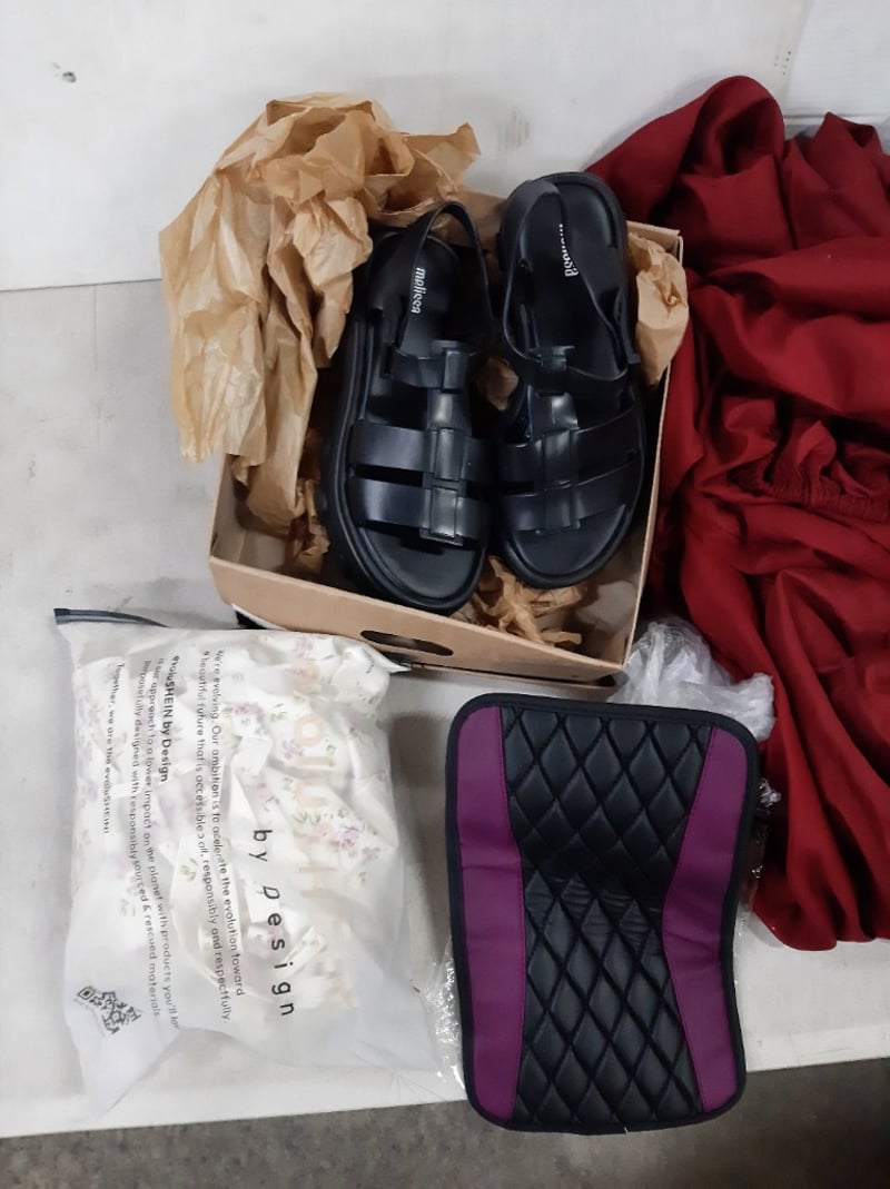 Cotton Pillows x 2, Bed Sheet, Clothing & SandalsBox Dimensions: L50 X W35 X H55cmSOLD AS LOT