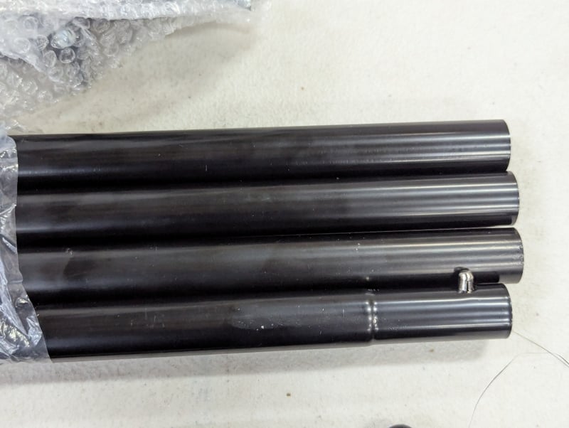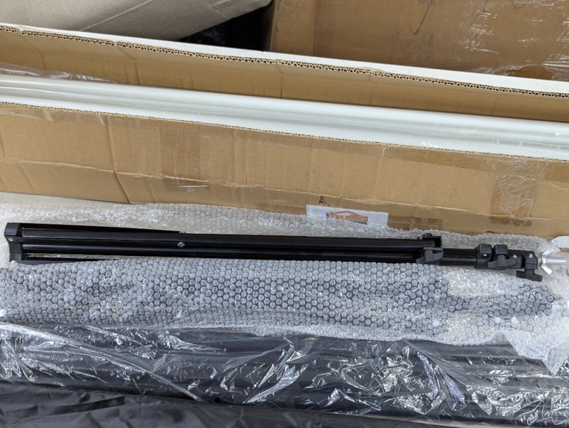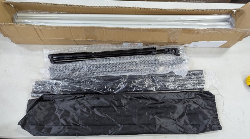 Two tripod stands with four connecting metal poles, collection of white hollow metal tubes, white tube lengths: 110cmSold as lot