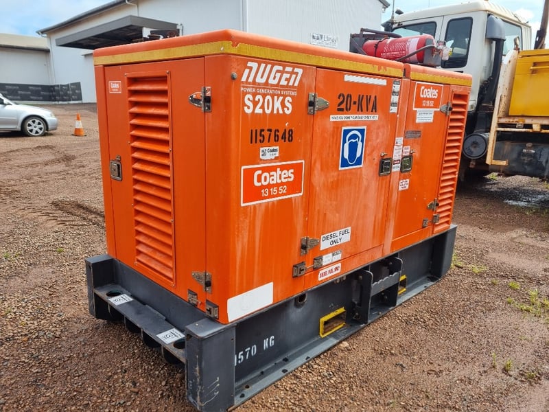 Promac Nugen 20kva Diesel Generator Year: 2015 Make: Promac Nugen Model: S20KS Serial No.: SG15060793 Run Hours: 20829 Num Starts: 1181 Shutdowns: 335 Fuel Tank Capacity: 188 Litres Notes: Kubota Diesel engine , isolator switch , Said to be in working order Contact: Mark David - 0437 318 344 Ref: 1157648 Lloyds Stock# 153921+2 #Plant&Equipment
