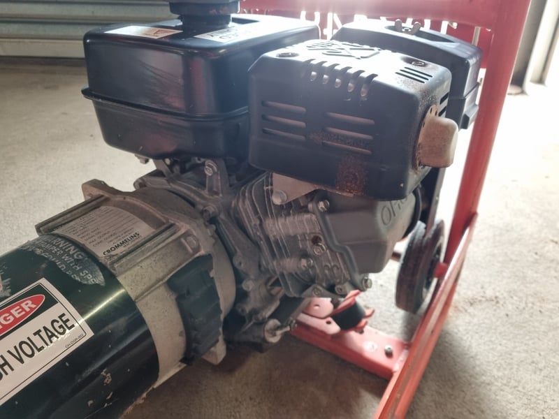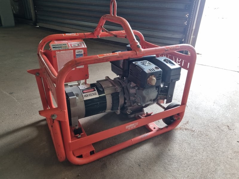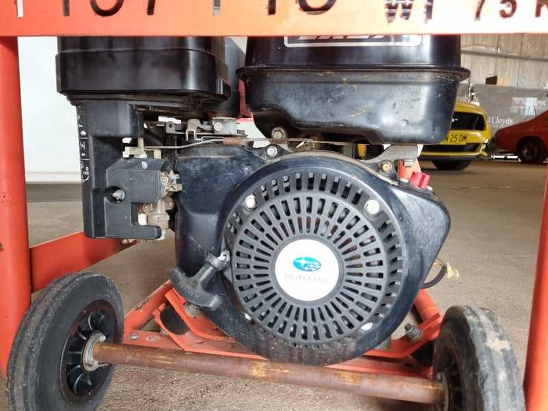 Crommelins 3.5kva Petrol Generator Engine: Genuine Subaru EX27 (9.0hp) Industrial Engine Generator Output: 3.5kVA Serial No.: E0563 Phase: Single Phase (240V, 50Hz) Alternator Type: Brushless Sincro Alternator Fuel Tank Capacity: 6.0 Litres Running Time: Approx. 2.8 hours (at rated output) Starting Method: Recoil (Manual) Start (Electric Start options available) Noise Level: 72dB @ 7m Dimensions: 750mm (L) x 510mm (W) x 550mm (H) Weight (Dry): 74.0 kg Ref: 1117425 Notes: Said to be in working order Contact: Mark David - 0437 318 344 Lloyds Stock# 153921+5 #Plant&Equipment
