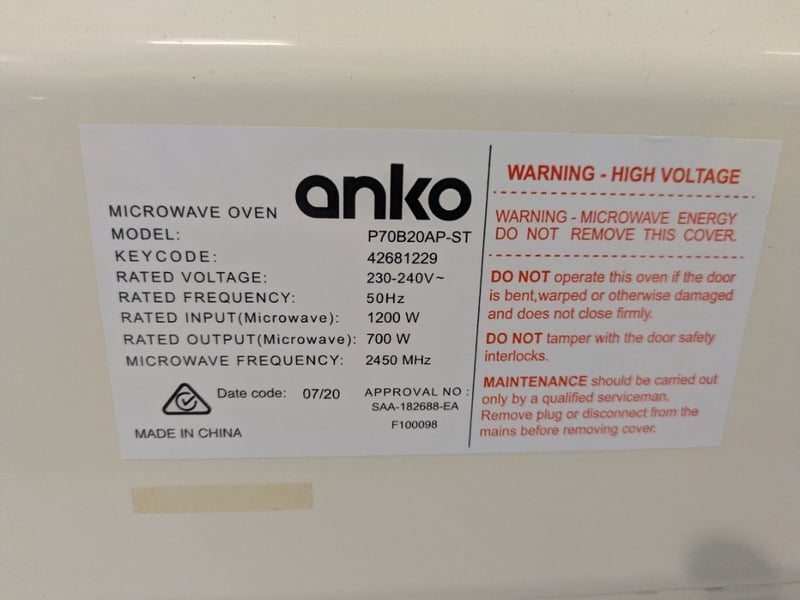 Anko Microwave. Model NO. P70B20AP-ST. Used Condition.