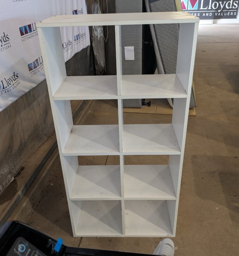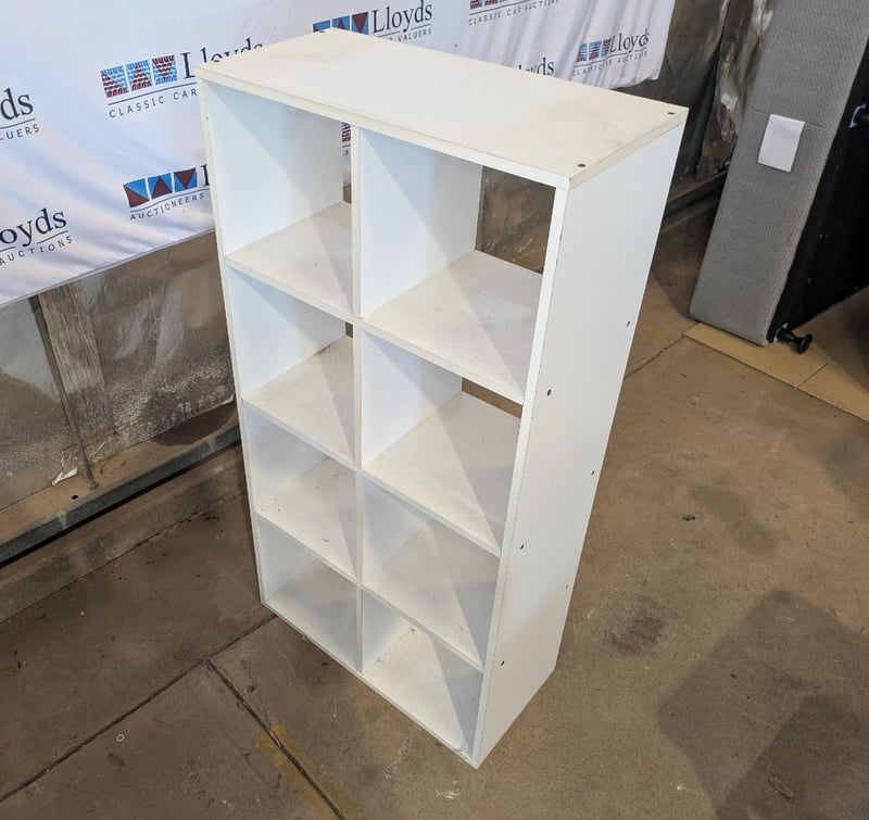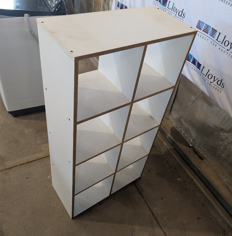 Wooden Shelf Unit with 8 Storage Compartments. Used Condition.
