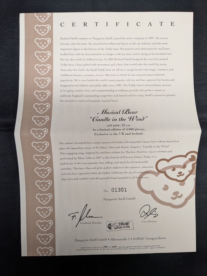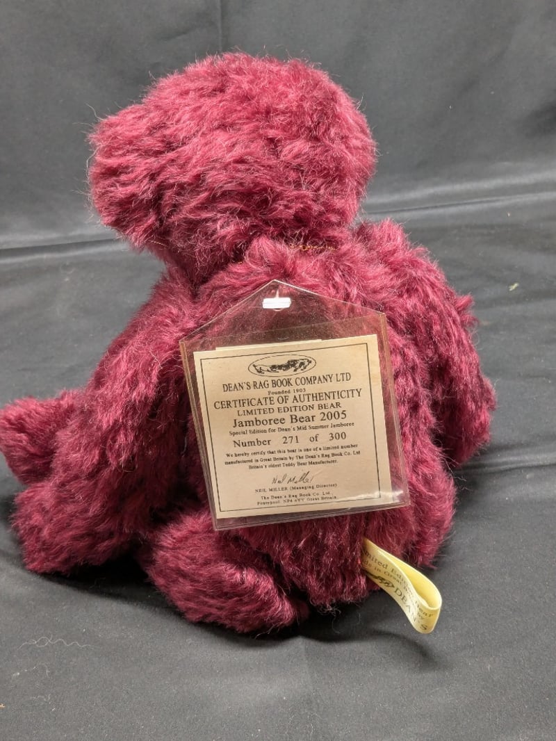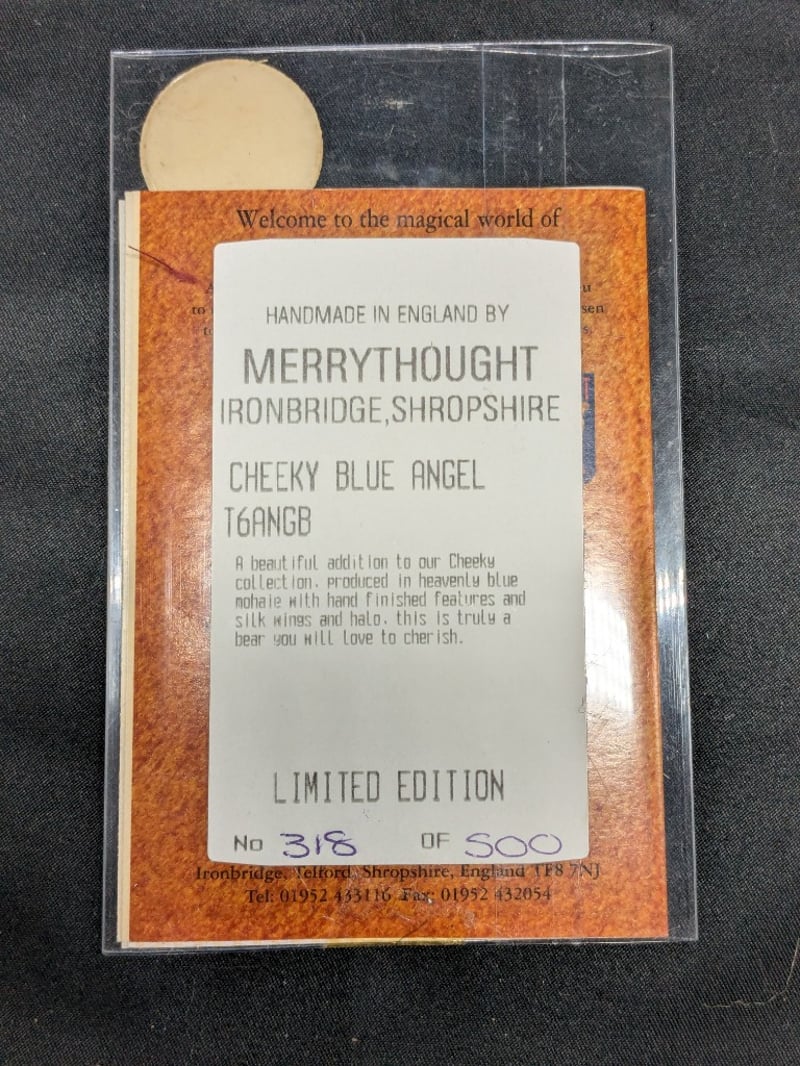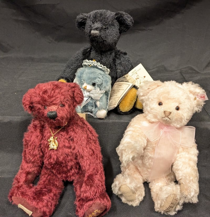 FOUR LIMITED EDITION TEDDY BEARSIncludes Merrythought Cheeky Blue Angel (Edition: 318 / 500), Steiff Musical Bear (Edition: 1301 / 4000), Deans Rag Book Nightfall Bear (Edition: 907 / 2000) Deans Rag Book Jamboree Bear (Edition: 271 / 300)Condition: Good - Refer To Images585053+9