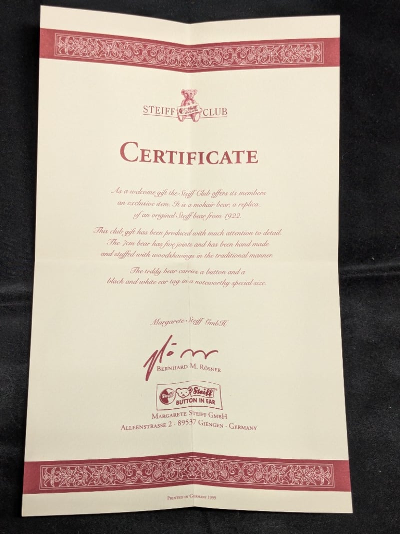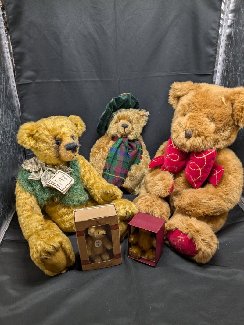 COLLECTION OF TEDDY BEARSIncludes Harrods 1997 Christmas Bear, Limited Edition Steiff Scottish Bear, Limited Edition Changle Bear, Deans Rag Book Mini Bear, Steiff Mini BearCondition: Good - Refer To Images585053+11