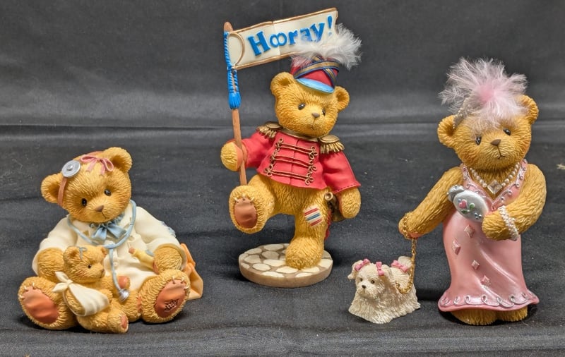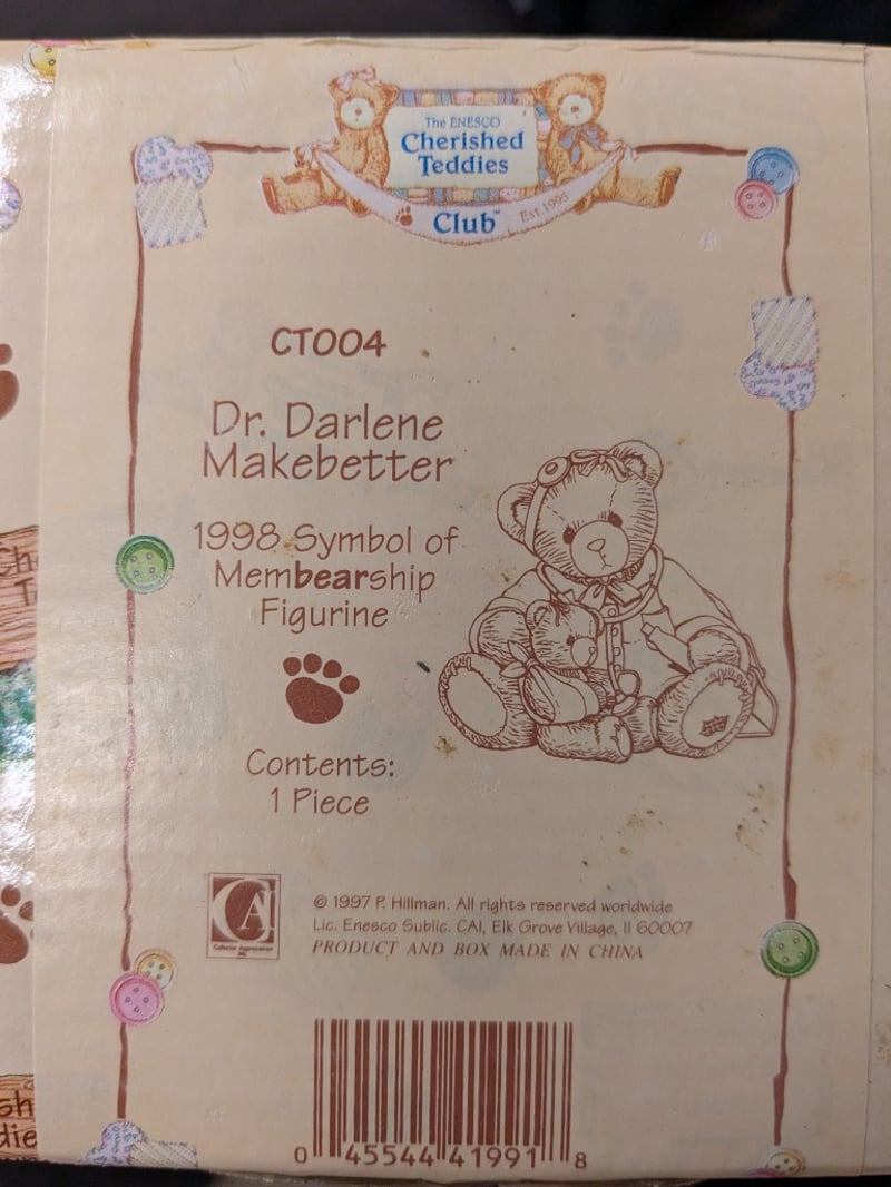 THREE CHERISHED TEDDIES FIGURINESBears Include 2000 "Gloria Growlette", 1998 "Dr Darlene Makebetter", And 1999 "Lanny"Package Also Includes Membership Boxes With BadgesCondition: Good - Refer To Images585053+18