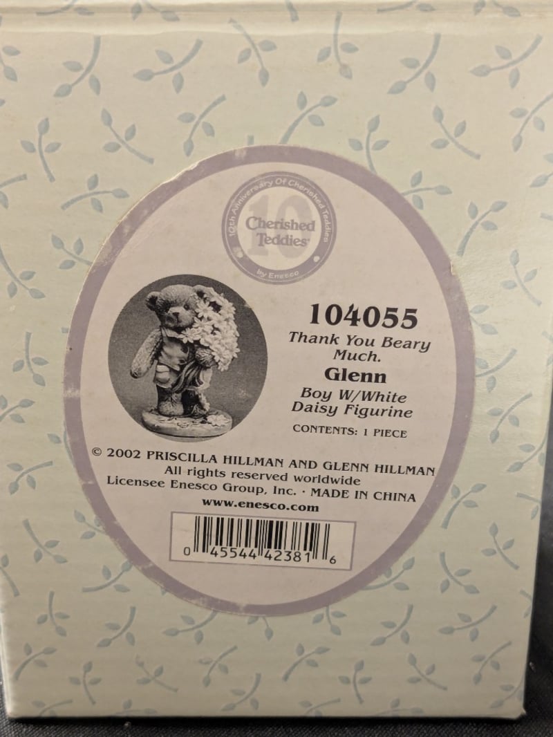 COLLECTION OF CHERISHED TEDDIESIncludes "England" (202878), "You Are An Inspiration" (4004818), "Mini Tumbling Teddies" (662119), "Kathleen" (916447), "Glenn" (104055), Mini Bear (916358)Condition: Good - Refer To Images585053+22