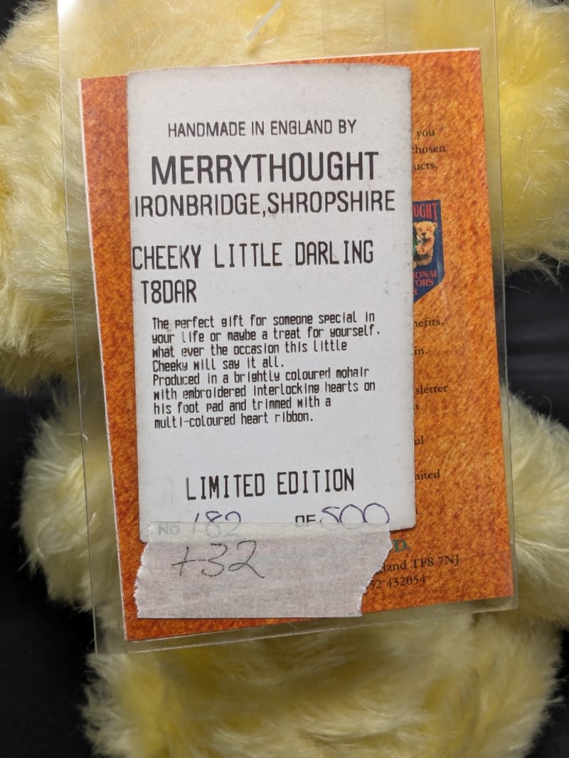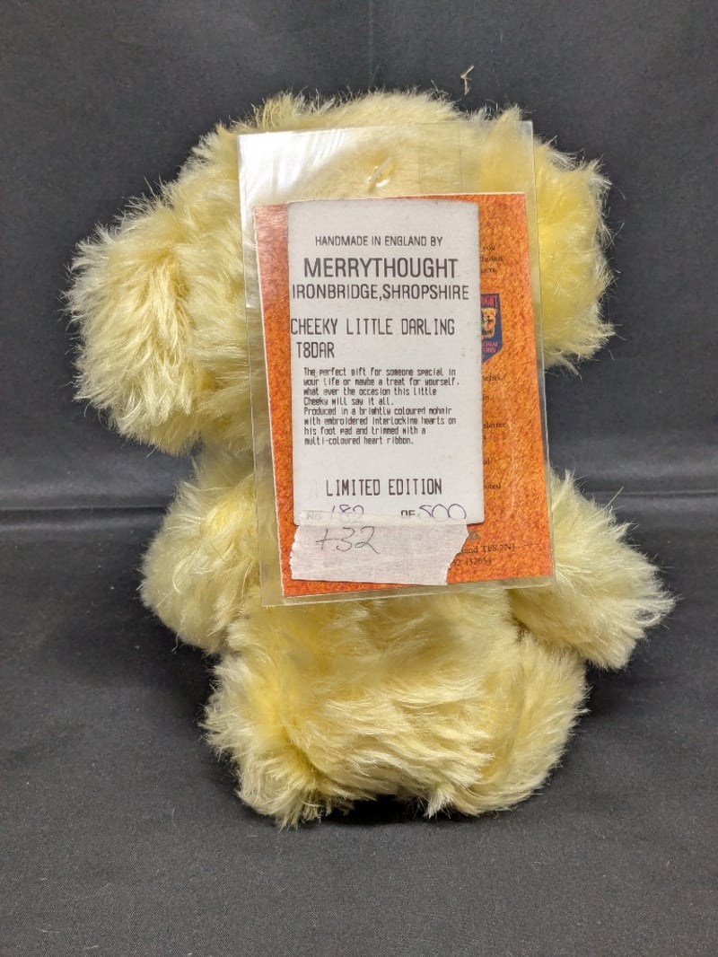 THREE LIMITED EDITION MERRYTHOUGHT BEARSIncludes The Wiltshire Bear (Edition: 430/500), Cheeky Little Darling Bear (Edition: 182/500), Cheeky Bear (Edition: 600/1000)Condition: Good - Refer To Images585053+31