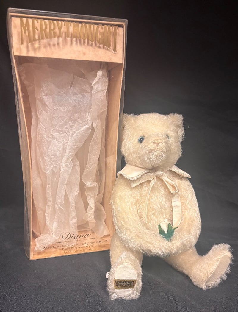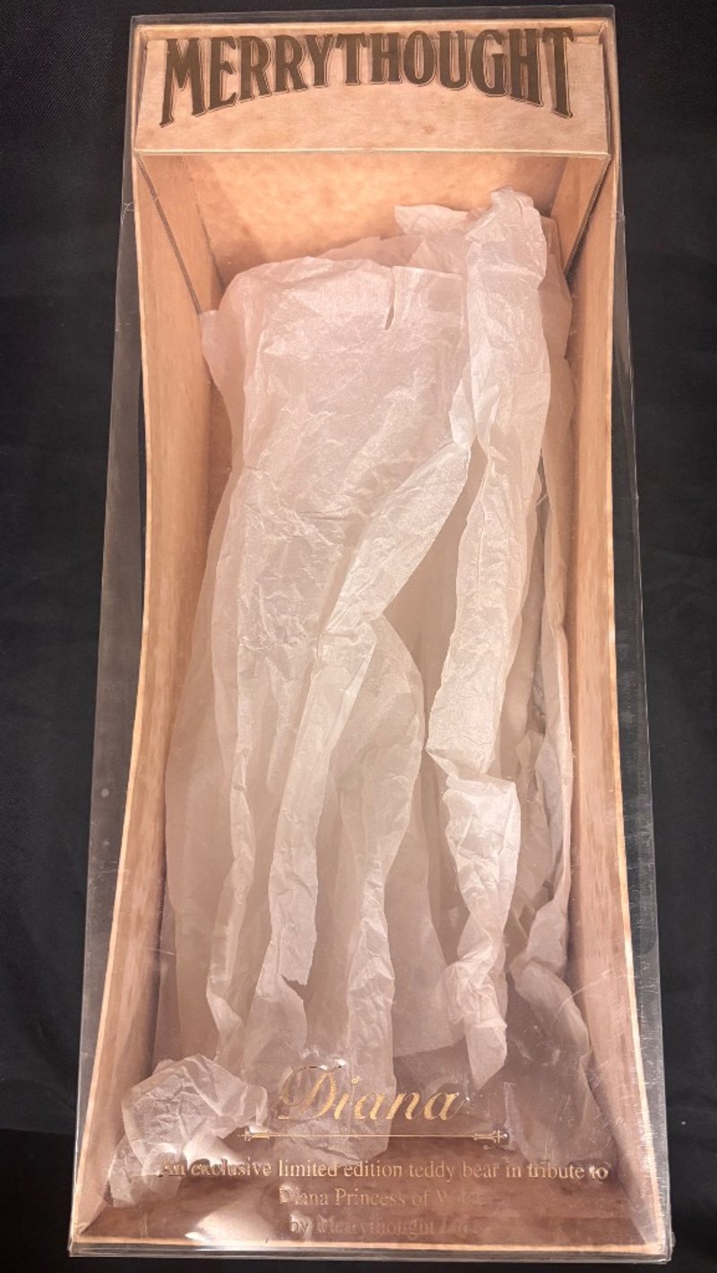 LIMITED EDITION MERRYTHOUGHT DIANA TRIBUTE TEDDY BEAR.Item Size: Height: 39cm, Width: 14cm, Depth: 13cm, Weight: 0.4KgEdition 398 Of 2500585053+35