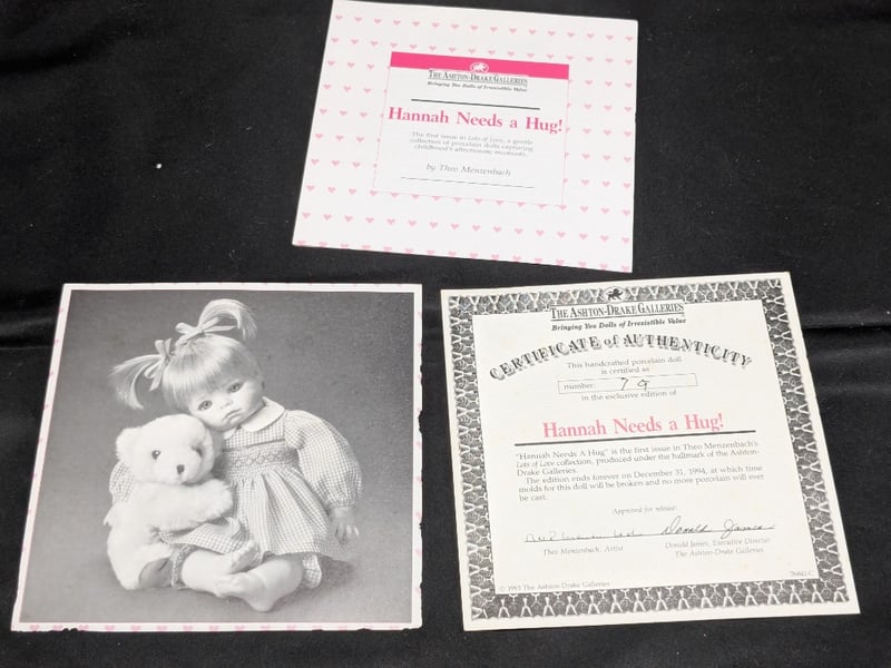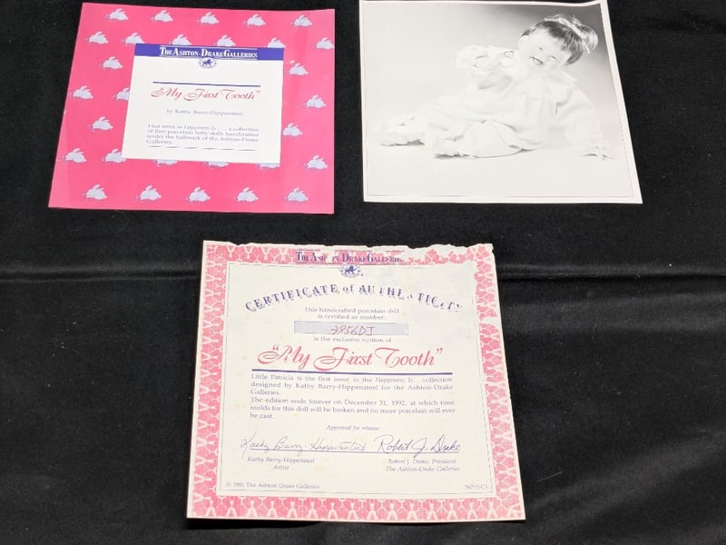 TWO EXCLUSIVE EDITION ASHTON-DRAKE GALLERIES PORCELAIN DOLLS, EXCLUSIVE EDITION GEORGETOWN COLLECTION PORCELAIN DOLLIncludes "Hannah Needs A Hug!" (Edition: 79), "My First Tooth" (38560J), "Good As Gold" (Gg9Y55)Dolls Include Certificates Of AuthenticityCondition: Good - Refer To Images585053+47