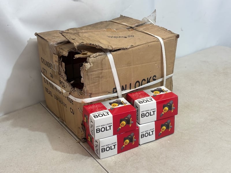 Lot of Hot Dog Locks Bolt, Brands such: Aldon Corporation, Brass, Metal and Plastic construction Qty. 29Sold as lot.Sold as lot.