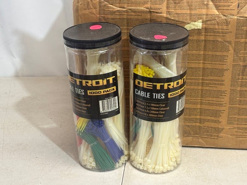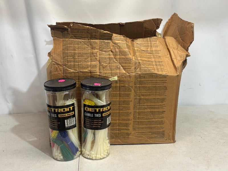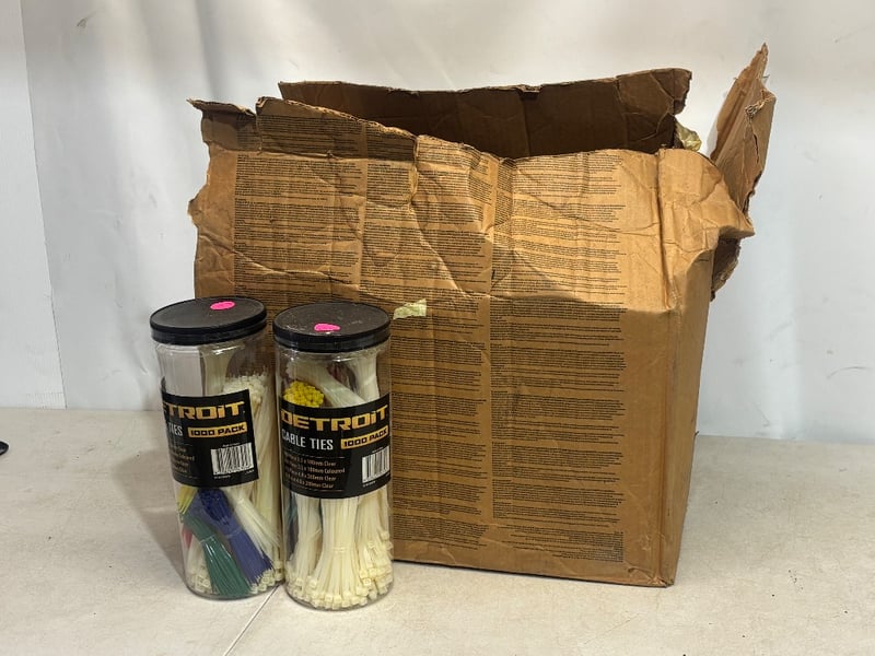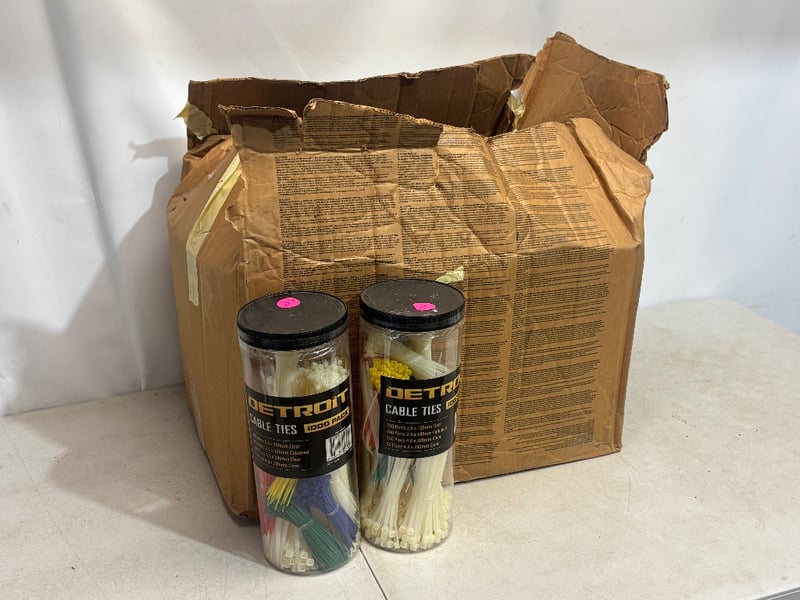Lot of Cable Ties, 1000pk Each, Assorted Colours, Brand: Detroit , Qty. 8Sold as lot