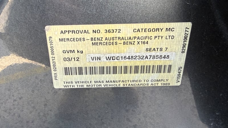 2012 Mercedes-Benz GL350 X164 CDI Year: 2012 Make: Mercedes-Benz Model: GL350 Series: X164 Badge: GL350 CDI Body: 5-Door SUV Drive Type: All wheel drive Odometer: Indicating 416,296 Kilometers Engine: 3.0 V6 Turbo Diesel Transmission: Automatic Colour: Grey Seats: 7 Description/extras: Air Conditioning, Power windows, SRS, Sat Nav, Digital dash, Power seats, Cruise control, Leather interior, Climate control, Central locking. Slight Engine Noise, Gutter rash, Dents and scratches to paint work, inspection recommend. VIN: WDC1648232A785848 ENG No: 64282241251821 Sold unregistered (Key #A47 (VIC)) Lloyds stock #993811+1