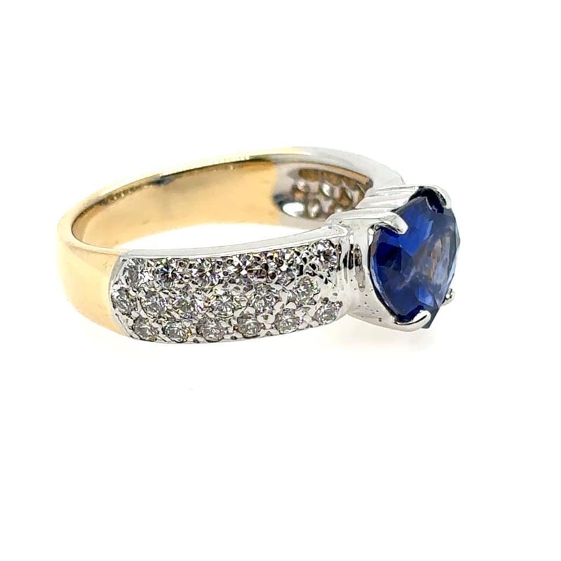 18CT YELLOW AND WHITE GOLD SAPPHIRE AND DIAMOND RING