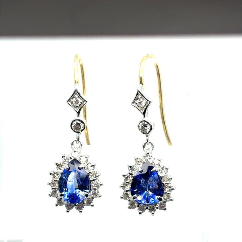 Featuring 2 Pear Cut Sapphires, Claw Set, 3.18Ct In Total Combined Weight (9.0 X 6.8 Mm And 9.5 X 6.5 Mm), And Blue In Colour 34 Round Brilliant Cut Diamonds, Set Around Centre Stone, 0.82Ct In Total Combined Weight, Si In Clarity And G In Colour.
