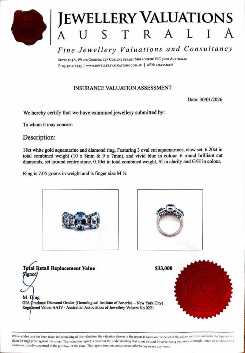 This valuation has been conducted by an independent third-party professional. The valuation amount is an assessment by the issuing valuer and does not reflect the auction value of the item.