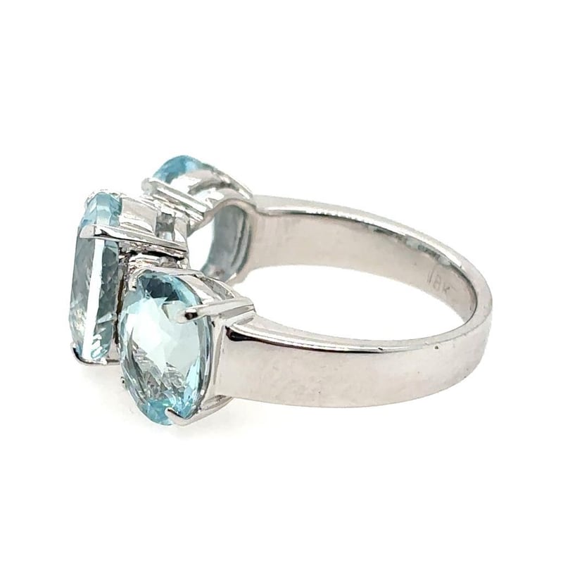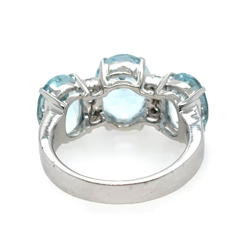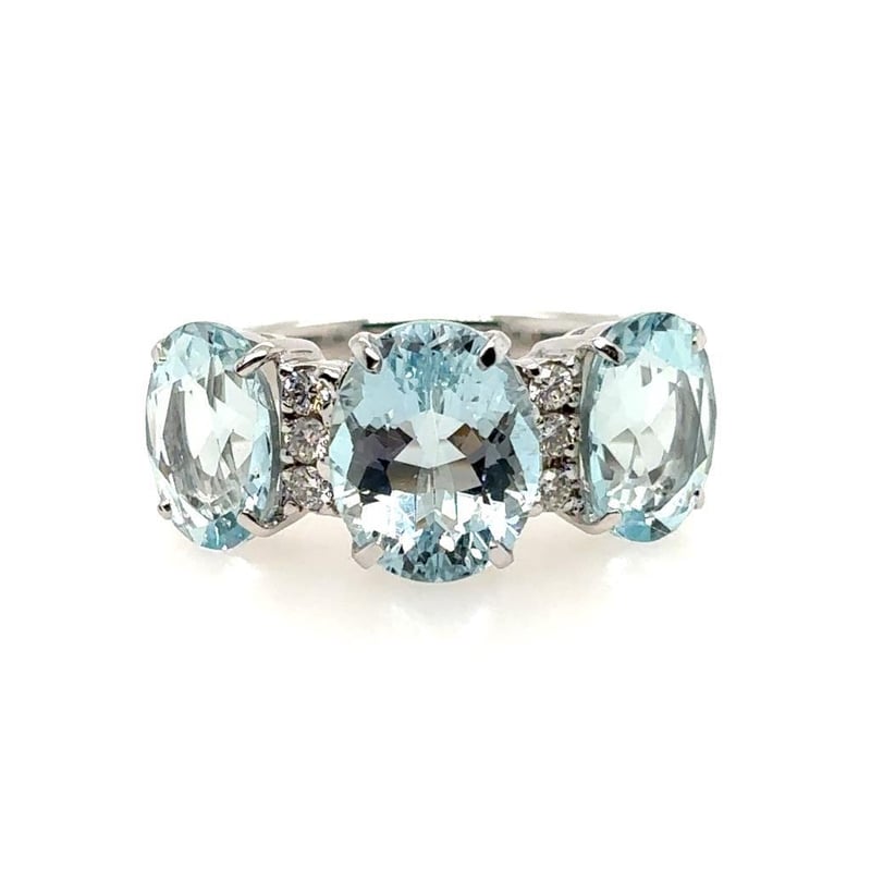 Featuring 3 Oval Cut Aquamarines, Claw Set, 6.20Ct In Total Combined Weight (10 X 8Mm & 9 X 7Mm), And Vivid Blue In Colour. 6 Round Brilliant Cut Diamonds, Set Around Centre Stone, 0.10Ct In Total Combined Weight, Si In Clarity And G/H In Colour.