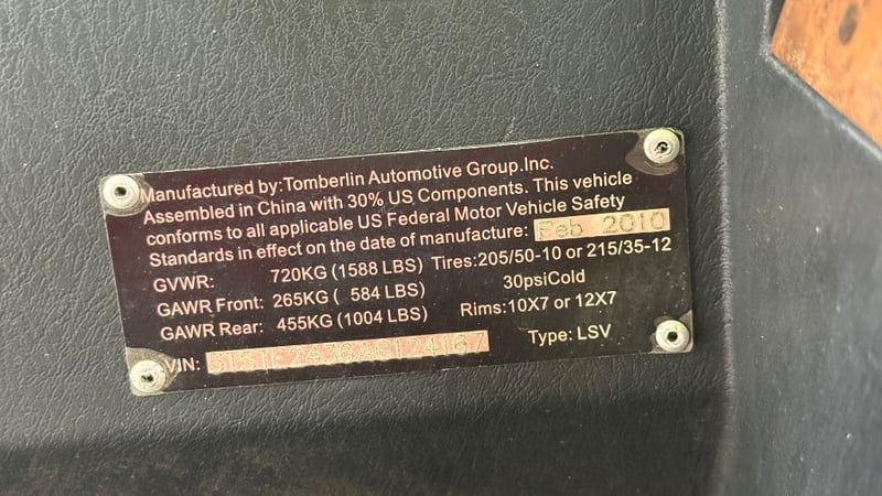 2010 Tomberlin Electric Golf Cart