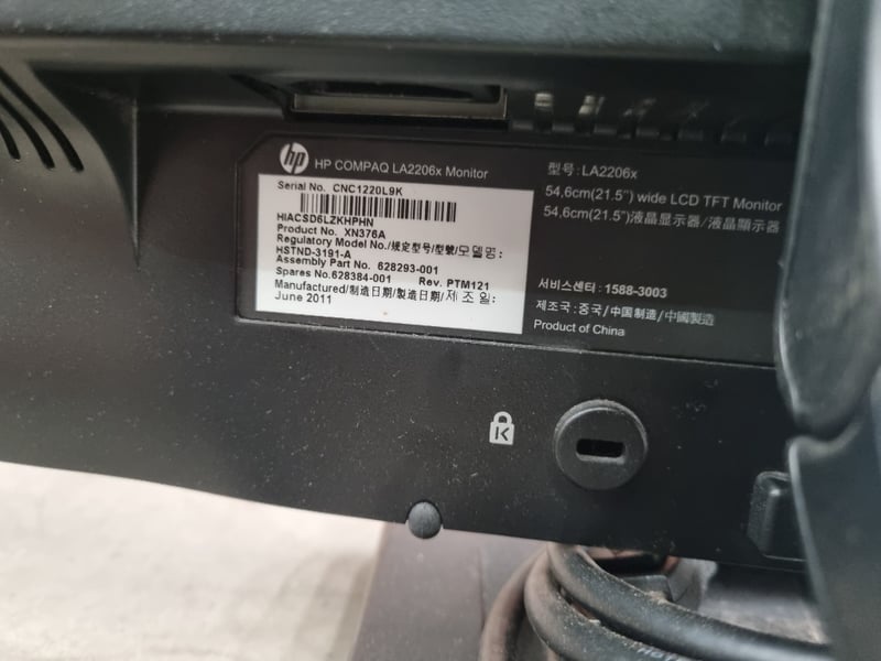 Monitor, brand - hp, Model - LA2206x, Serial - CNC1220L9K, Monitor, brand - hp, Model - LA2206x, Serial - CNC1220L9GMonitor arm