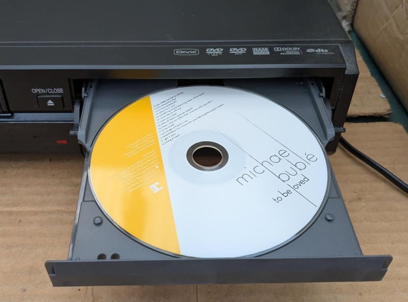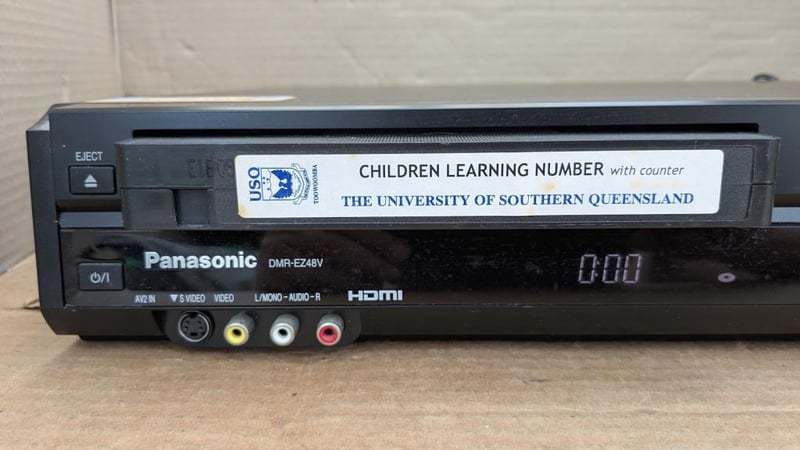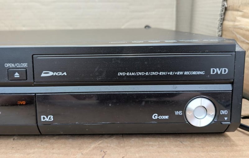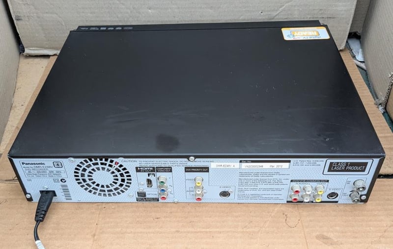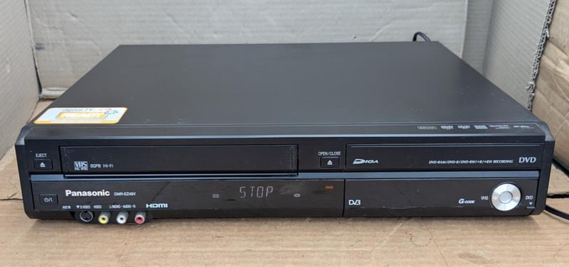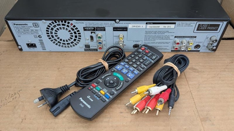 Panasonic DMR-EZ48V DVD recorder and VHS tape with remote, power and Audio video cables