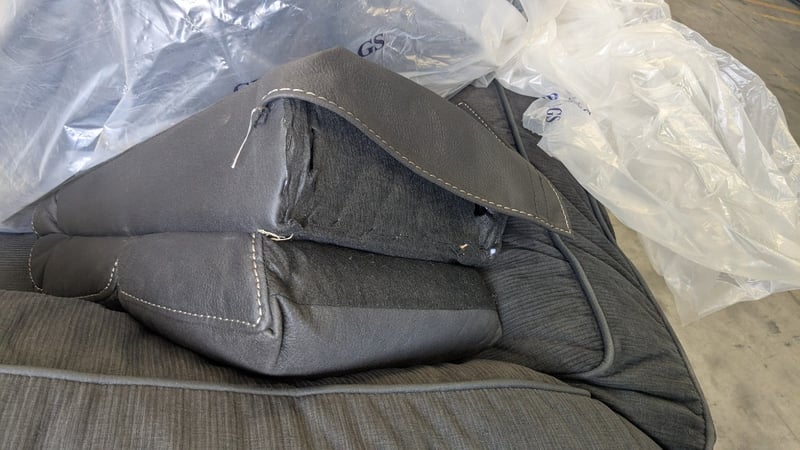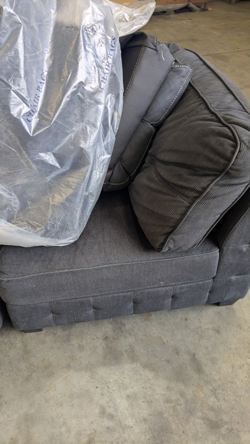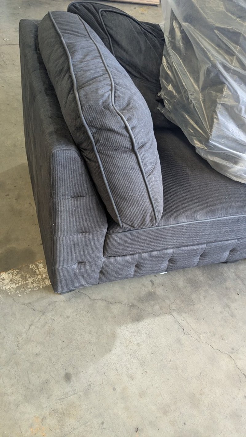 Corner Lounge Piece, Colour: Ebony, Timber Legs, Includes Assorted BacksDimensions: 1000mm(W) x 1000mm(D) x 800mm(H) SOLD AS LOT NOTE: CORNER PIECE ONLY