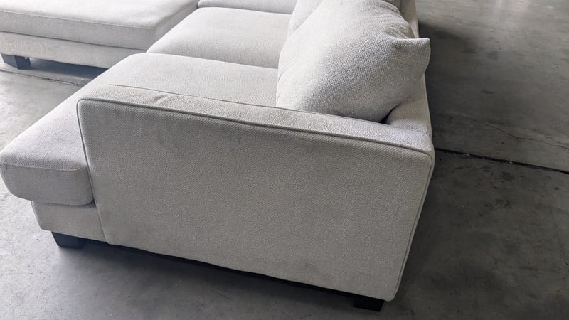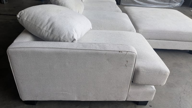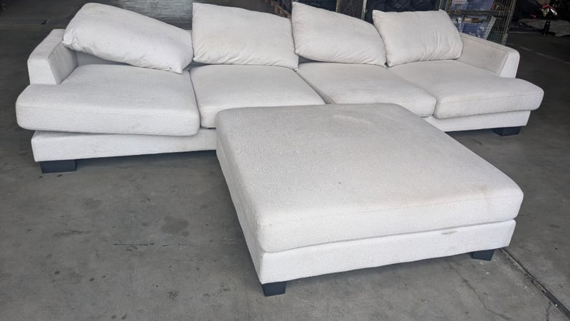 4 Seater Fabric sofa, Colour: Oyster, Black Timber Legs, Ottoman