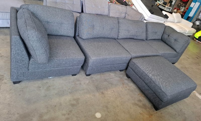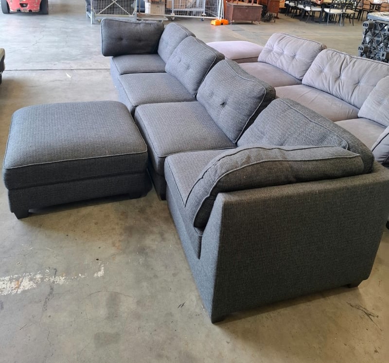 5 Piece Sofa Suite, Fabric, Colour: Larva, Includes Ottoman Dimensions: 3900mm(W) x 980mm(D) x 800mm(H) Ottoman: 1000mm(W) x 980mm(D) x 480mm(H) SOLD AS LOT NOTE: INSPECTIONS HIGHLY RECOMMENDED,
