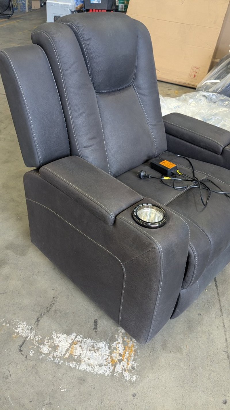 Single Electric Recliner, Colour: Jet, Cup Holders, Push Button Control, Arm Storage Dimensions: 920mm(W) x 730mm(D) x 1000mm(H) NOTE: INSPECTIONS HIGHLY RECOMMENDED