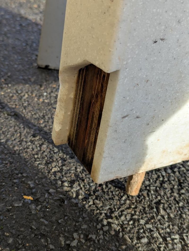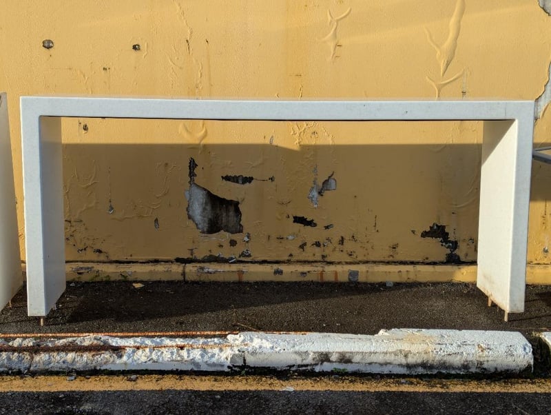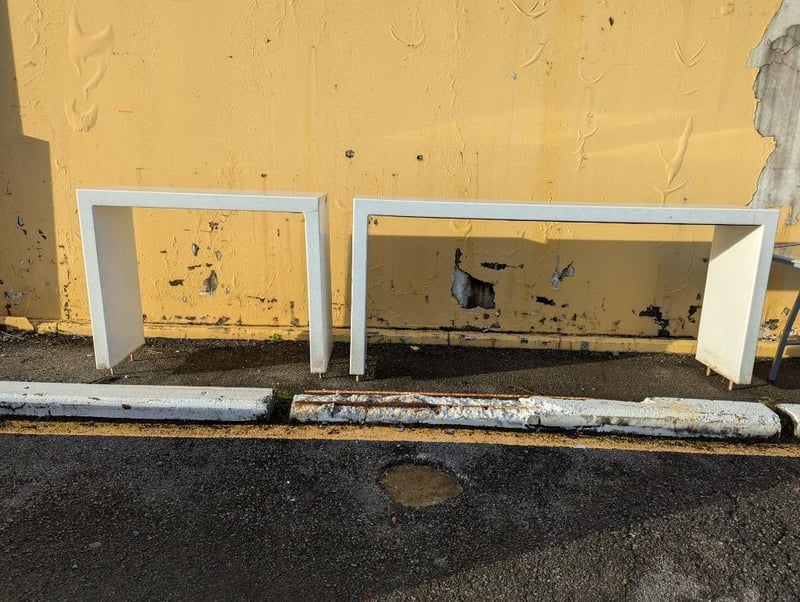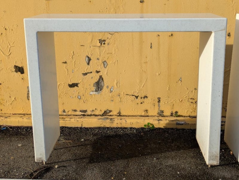 Outdoor benches, timber with stone/marble style facade, posts at feet for concrete setting Note: some cracks visible Dimensions small: H 93.5cm x W 200cm x D 40cm Dimensions large: H 93.5cm x W 110cm x D 40cm PLEASE NOTE : Due to the nature of this item, shipping is not available. Local collection only. SOLD AS LOT