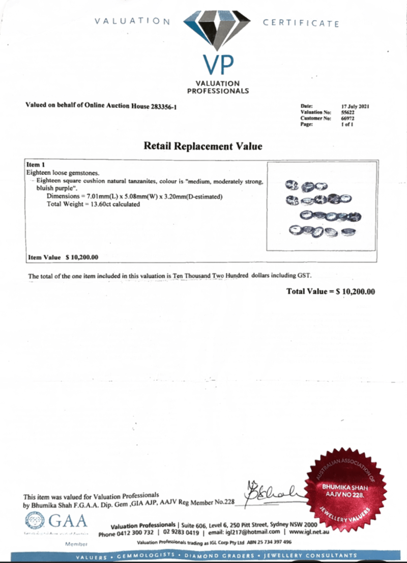 This valuation has been conducted by an independent third-party professional. The valuation amount is an assessment by the issuing valuer and does not reflect the auction value of the item.