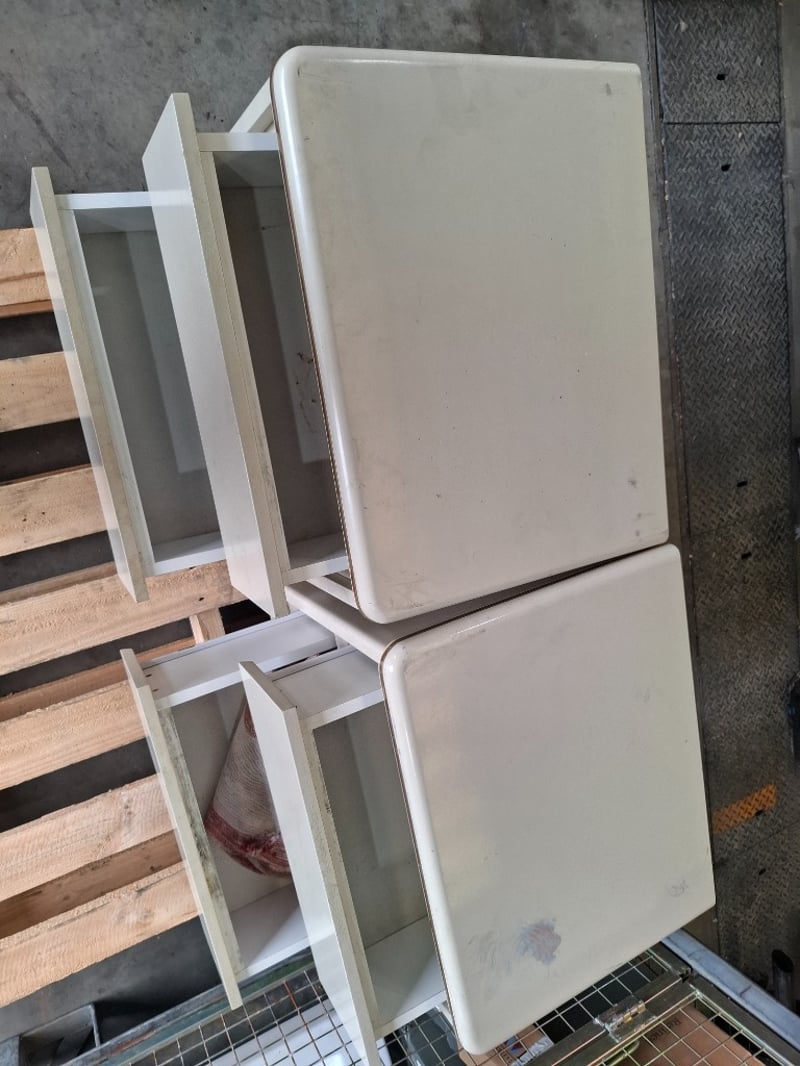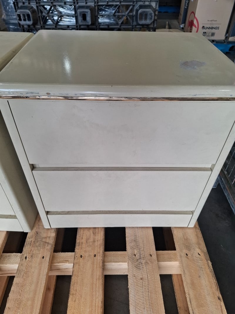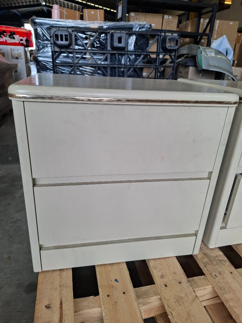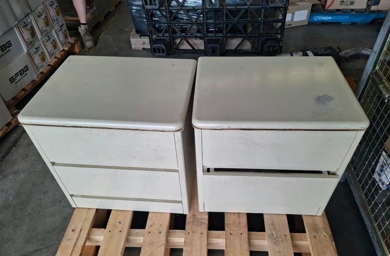 2 x cream timber bedside tables