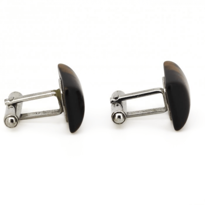 PAIR OF SILVER, TIGERS EYE, CUFFLINKS.