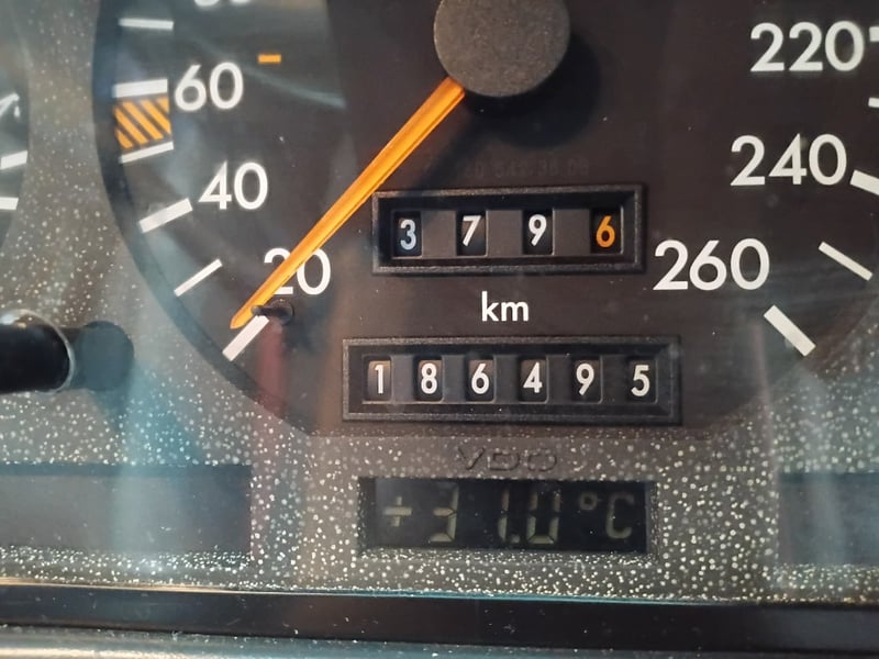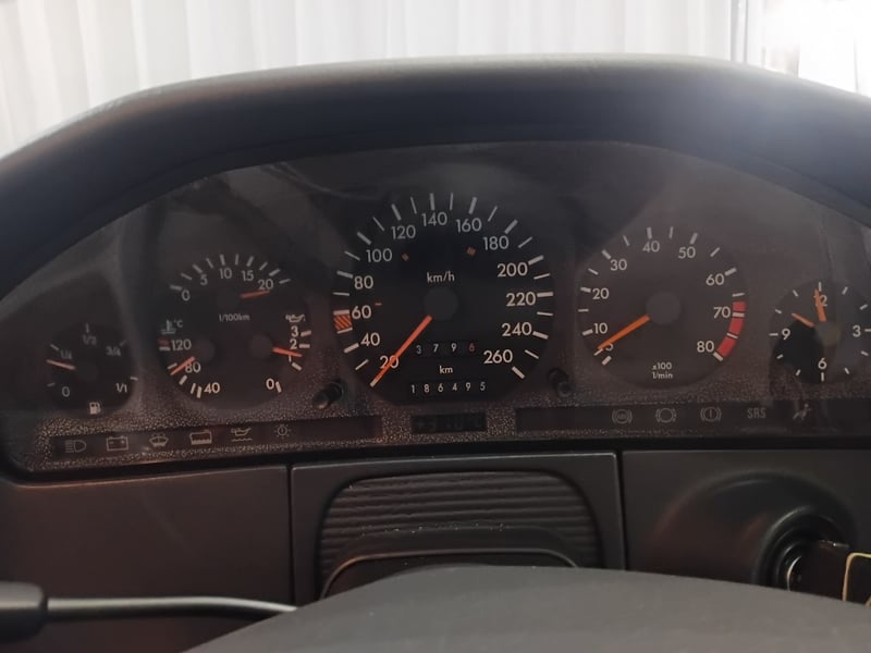 1992 Mercedes‑Benz S‑Class four‑door sedan finished in Silver. Powered by a 3.2‑litre inline six‑cylinder petrol engine paired with an automatic transmission. Odometer indicating 186,495 kilometres.