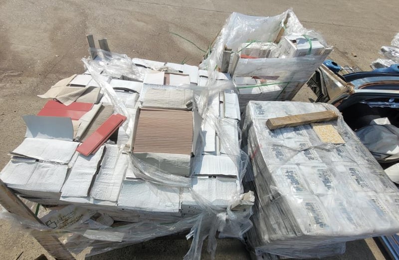 X3 lots of tiles includes Petti Bella Red Gloss Wall Tile 65mm x 265mm - 92m2 and yellow tile.
