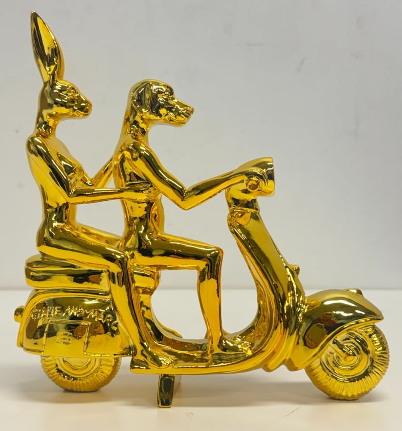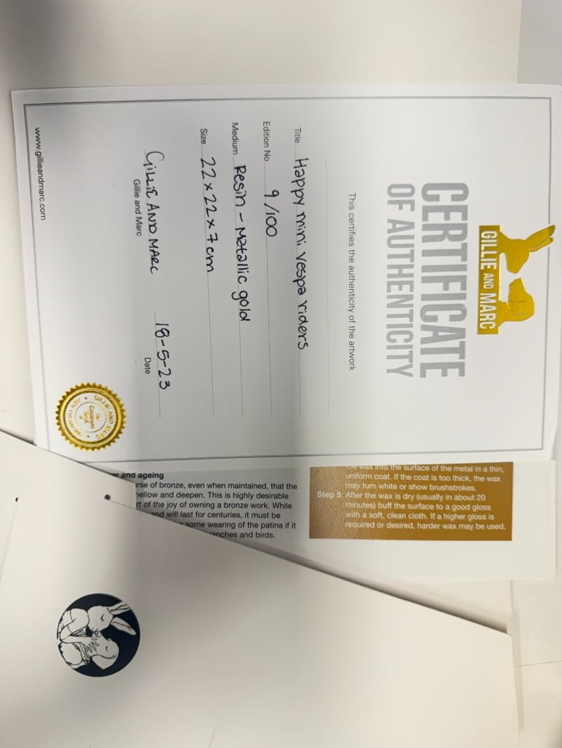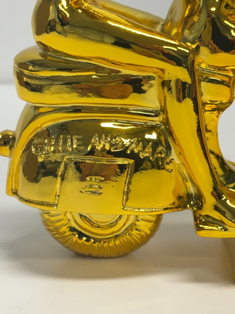 GILLIE 1960 & MARC 1963 Ltd Editioned Reisin Sculpture Title: "Happy Mini Vesper Riders" Item Size: Height: 22cm, Width: 22cm, Depth: 7cm, Weight: 1Kg Edition: 9/100 Accompanied By A Certificate Of Authenticity Provenance: Gillie & Marc Bronzes Are Highly Collected And Sort After With Them Being Sold Worldwide 488457+39