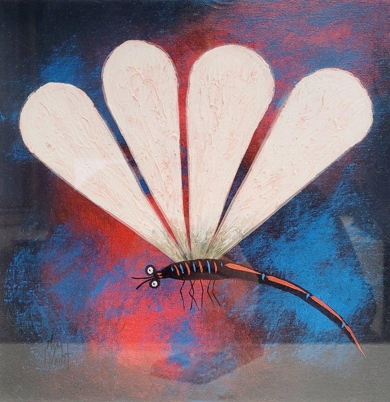 KYM HART 1963-Original Oil Painting On BoardTitle: "Dragonfly"Frame Size: 43cm x 42cmProvenance: Kym Is The Son Of The Legend Pro Hart He Has Forged A Career For Himself In The Artworld With His Works Being Collected And Sort After.488457+7