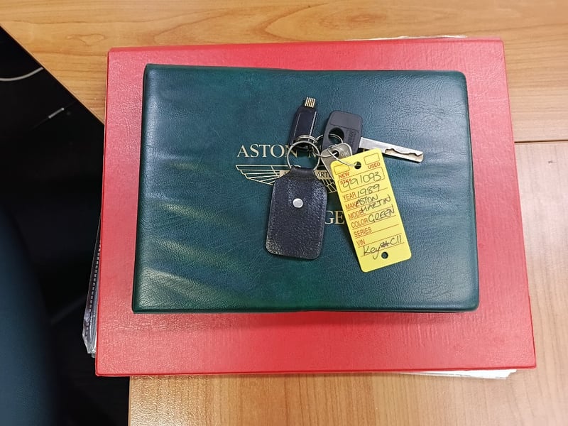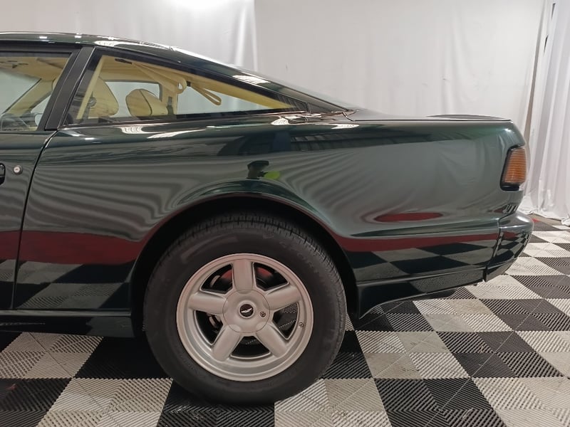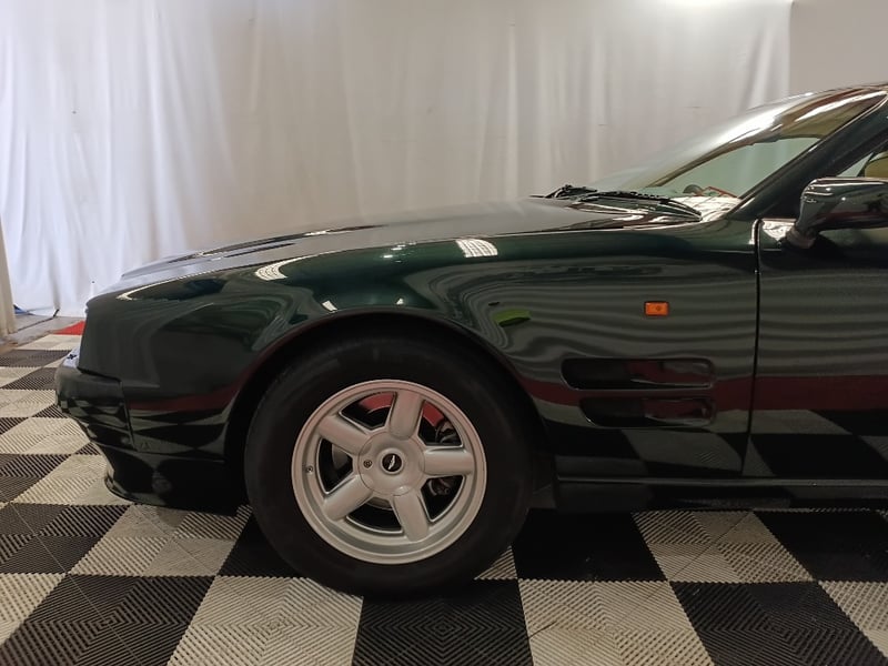 1989 Aston Martin Virage two‑door coupe finished in green, featuring rear‑wheel drive and powered by a 5.3‑litre V8 petrol engine paired with an automatic transmission. Odometer indicating 30,379 kilometres.