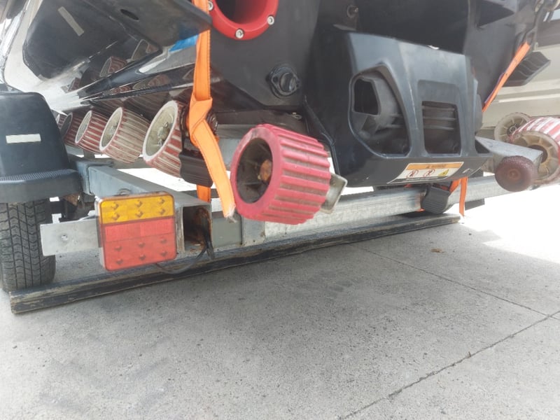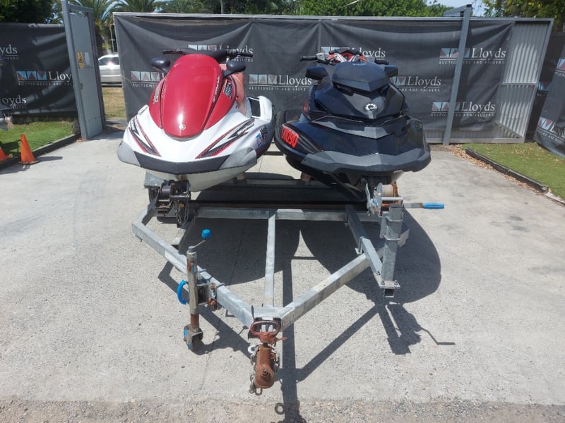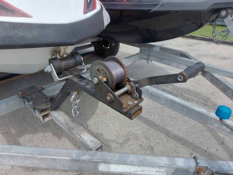 Description: Double Galvanised Jetski Trailer, New LED Lights, Jockey Wheel, Dual Winch System, 50mm Towball Connection, 7 Pin Connector,