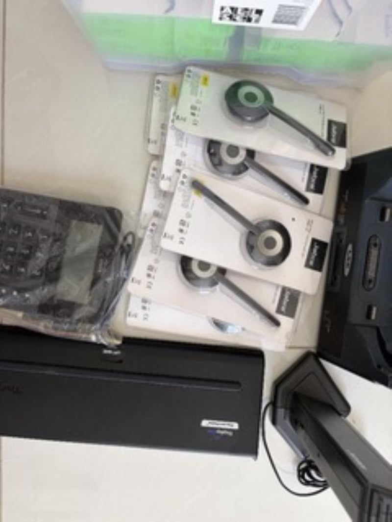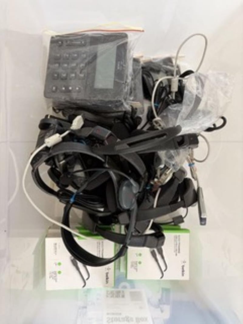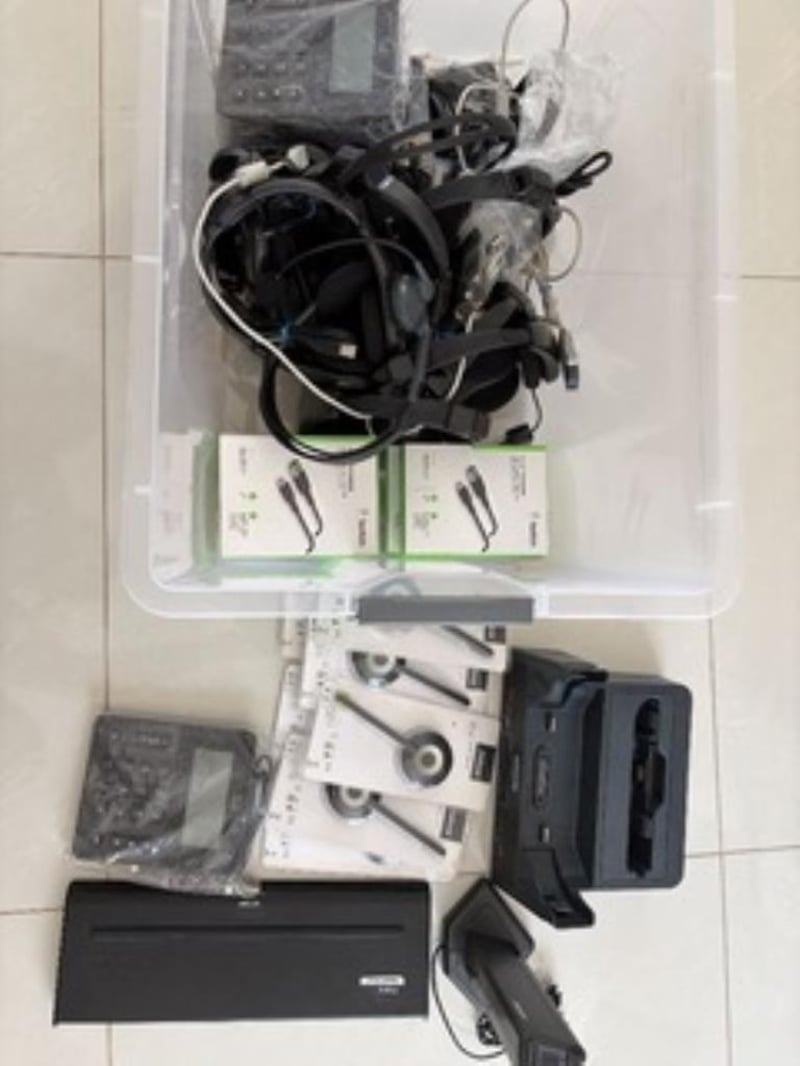 lot of 7x jabra pro headsetlot of belkin USB-A to micro-USB cableslot of assorted headsets / headphonesAssorted Cisco numpads, presentation technologySold as used and untested