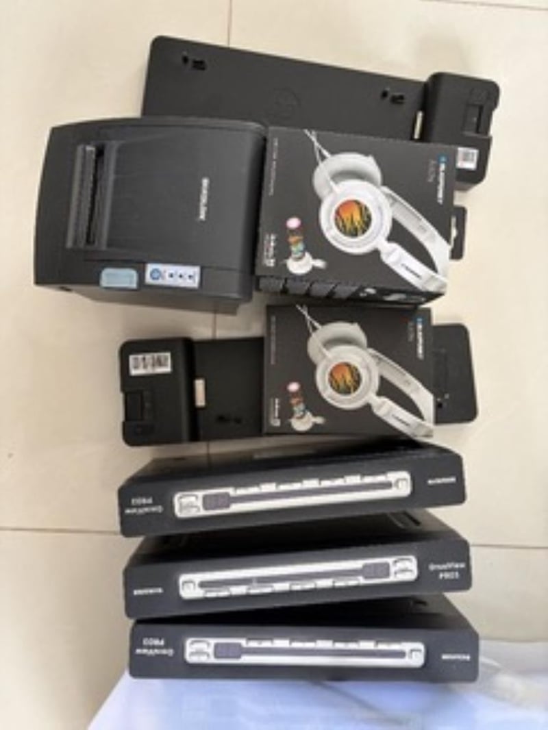 Lot of 3x Belkin OmniView Pro32x HP ultraslim Dock2 x blaupunkt headphones1x Bixolon printerBulk lot of assorted cables, phones and assorted techSold as used and untested
