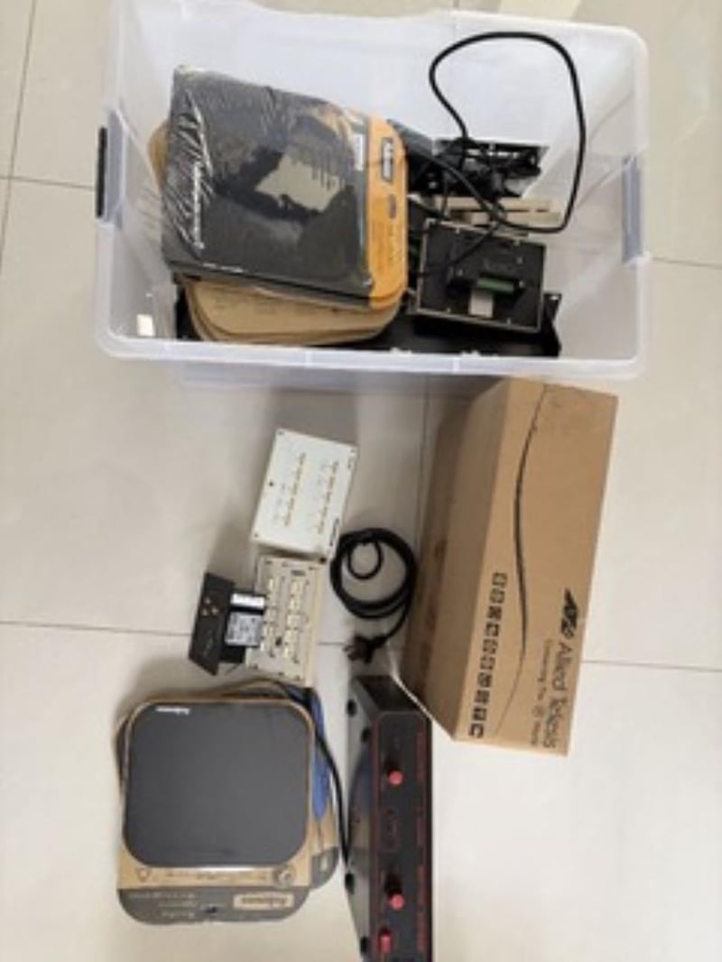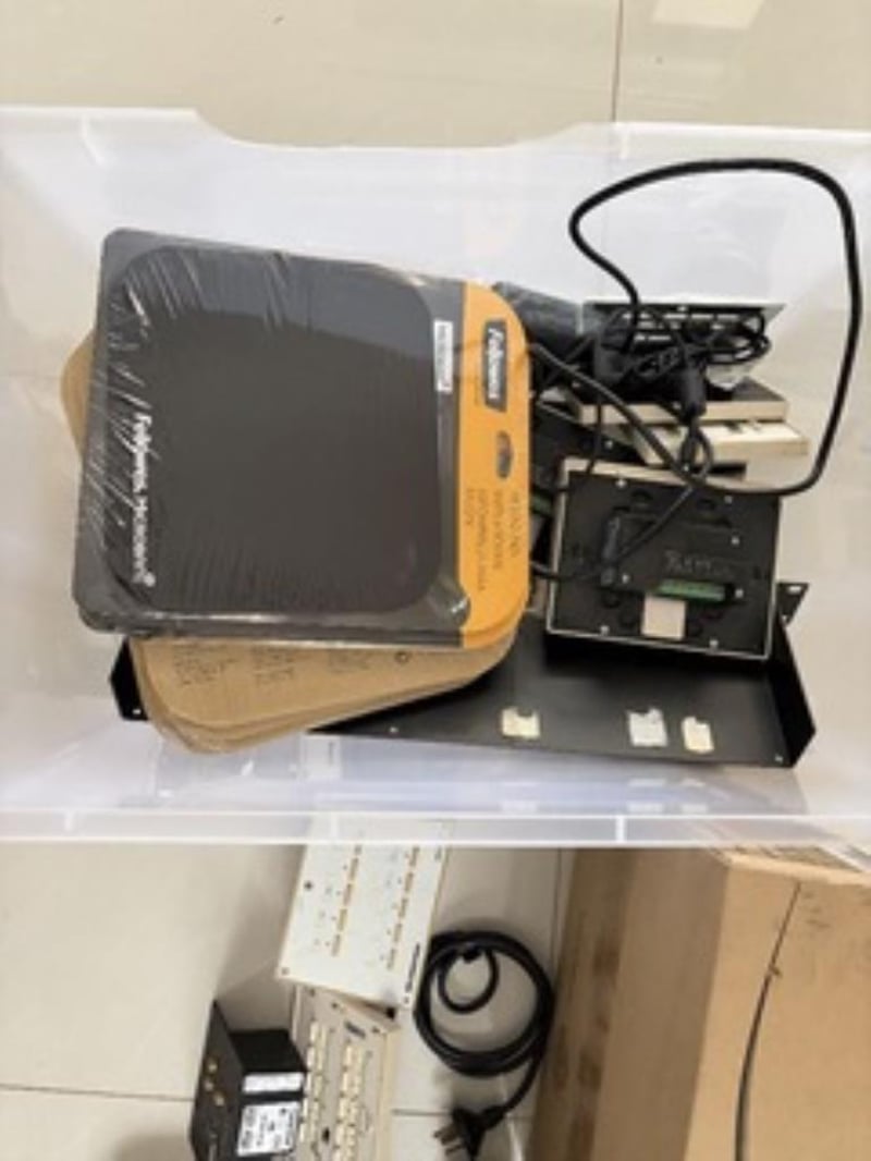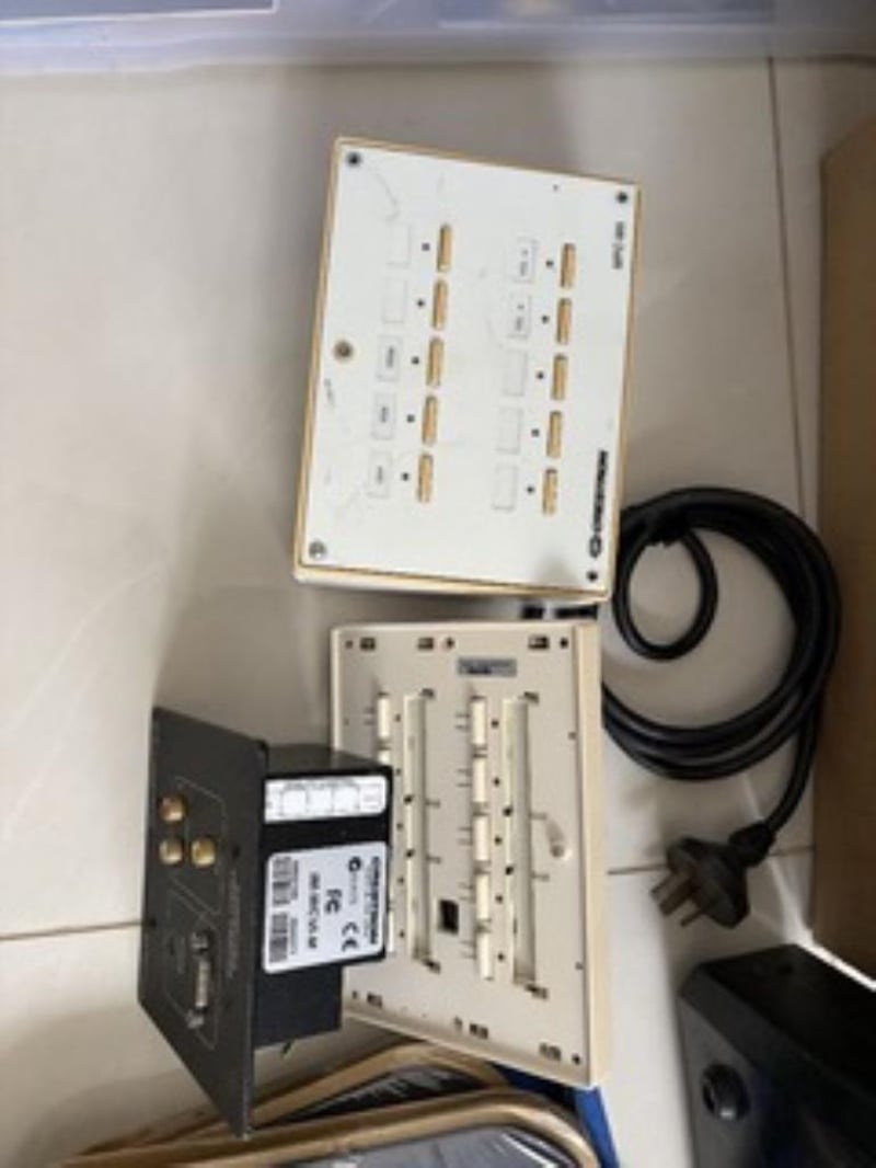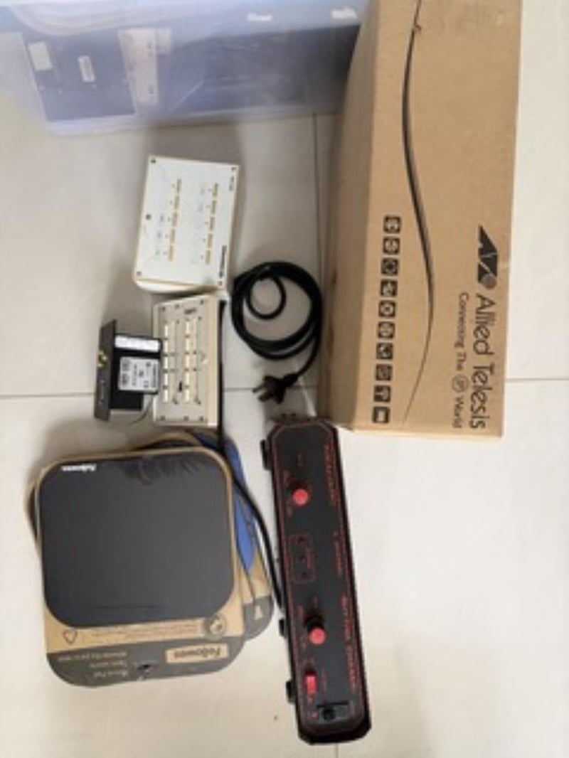 Lot of bulk mouse pads, Crestron MPC-M5 media presentation controllers1x Allied telesis power supply1x Realistic 3 channel rhythm chaserSold as used and untested
