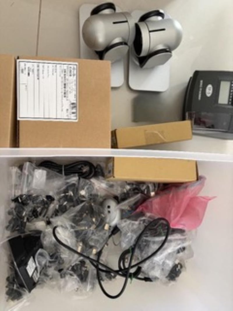 2x Polycom MPTZ cameras2x Cisco 7925G Power SuppliesBulk container lot of assorted adapters, power supply connectors Sold as used and untested