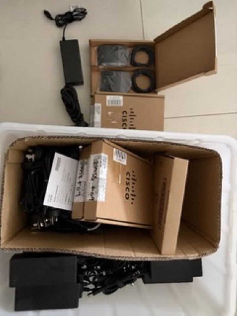 Bulk lot of Cisco UC Phone microphones , power adapters and cablesSold as used and untested