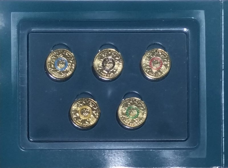 2016 AUSTRALIAN OLYMPIC TEAM 5 COLOURED $2 COINS COLLECTION Condition: UNCMint Issue488466+34