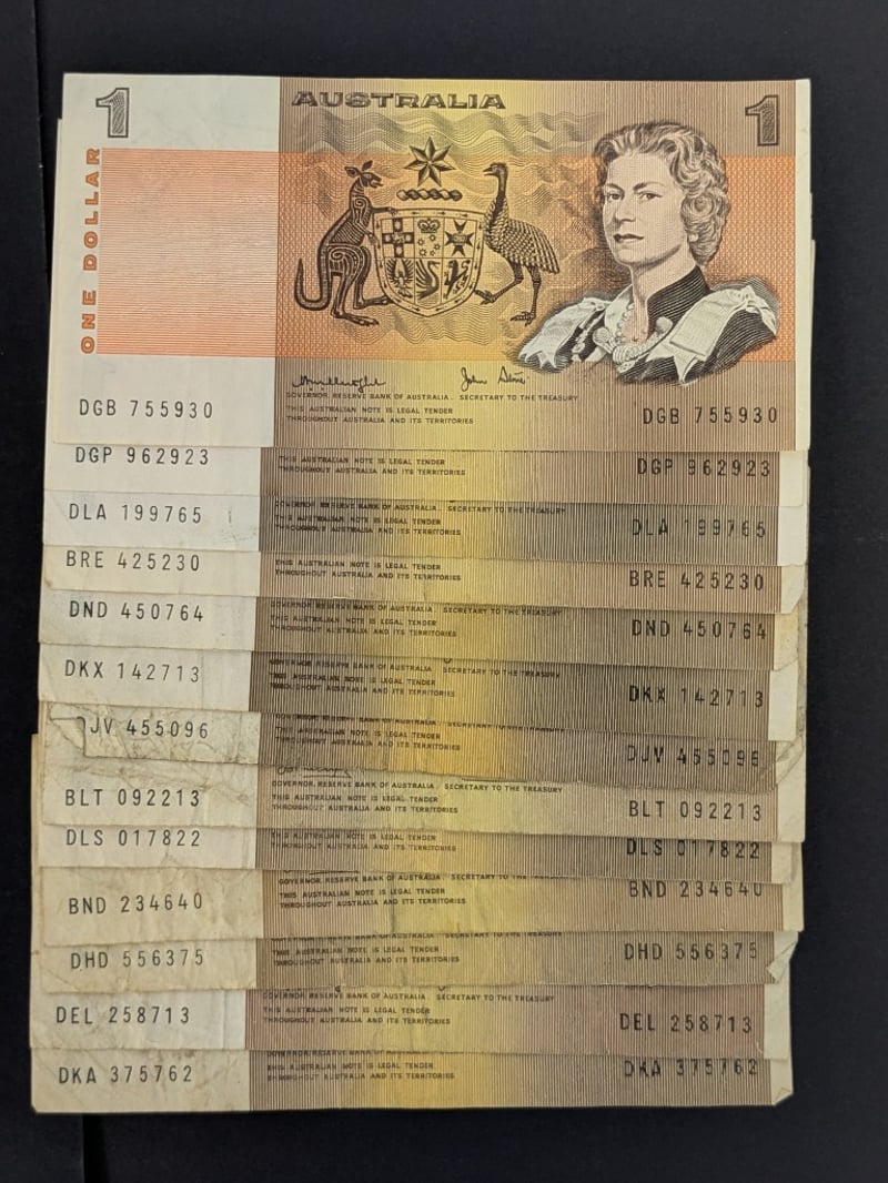 13 X AUSTRALIAN ONE DOLLAR BANK NOTES IN VARIOUS CONDITIONS