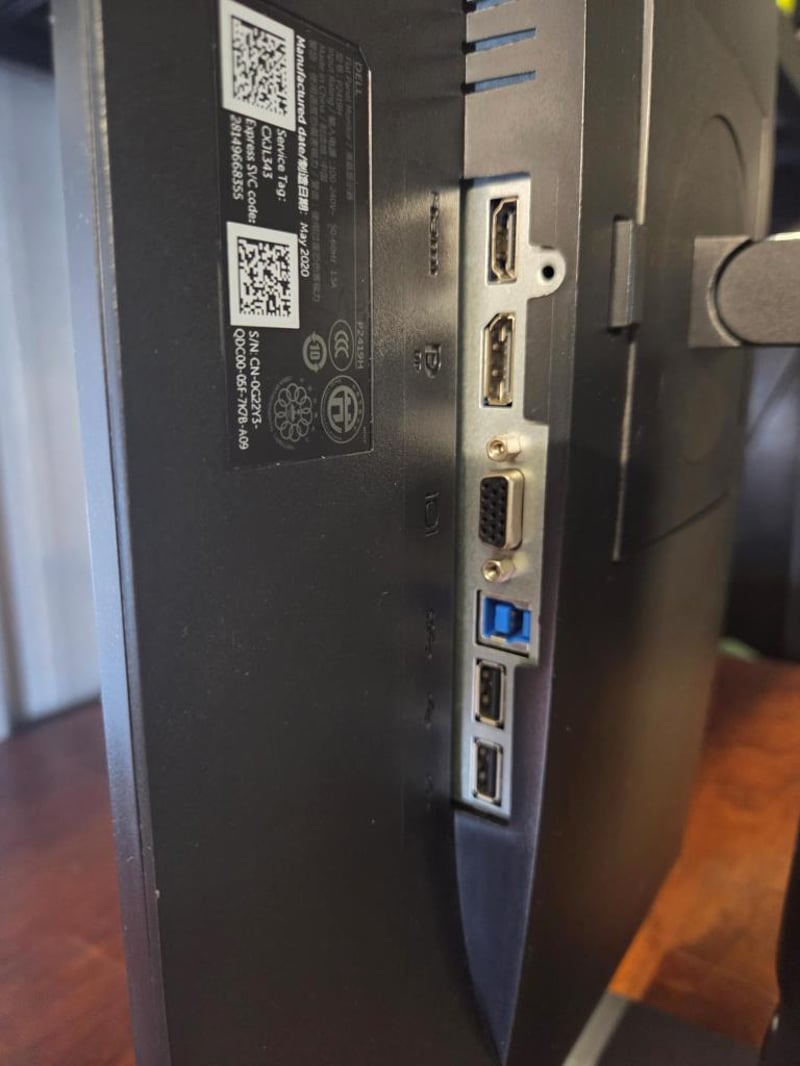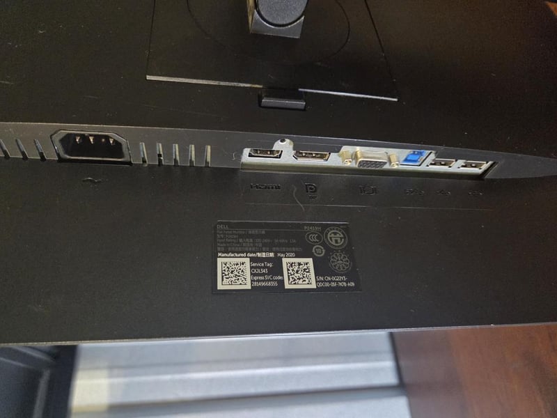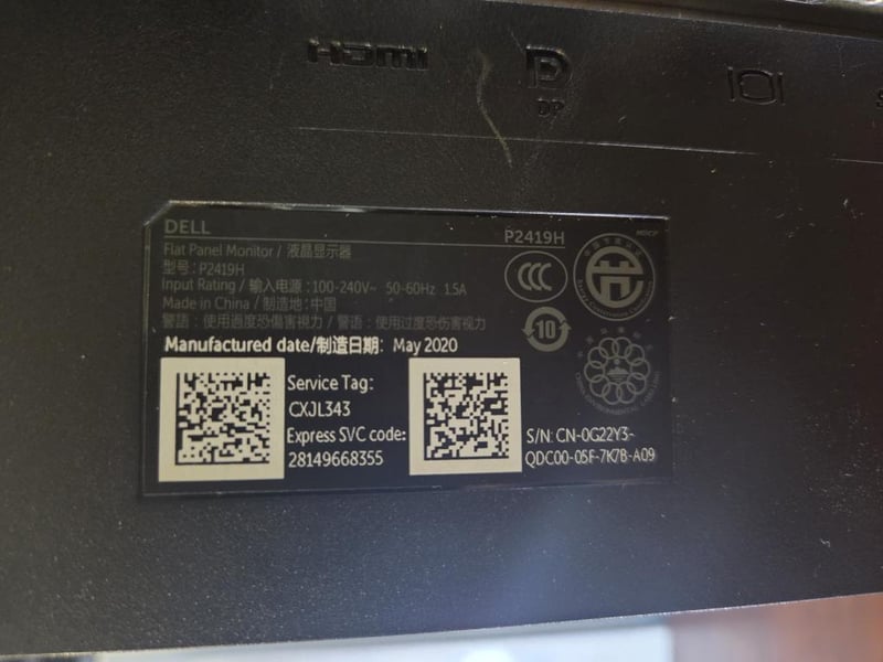 Dell model P2419H flat panel monitor, manufactured May 2020.