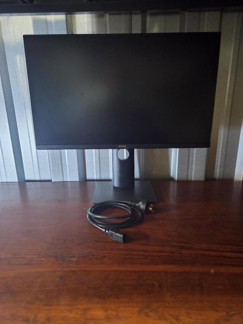 Includes original Dell stand and power cable; HDMI, DisplayPort, VGA and USB ports visible.