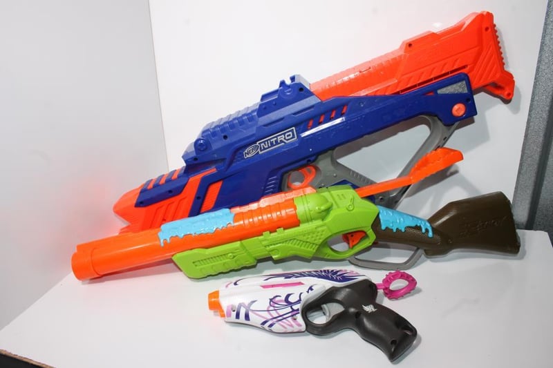 Nerf Blaster Bundle – Nerf Nitro + XShot (Lot)Used bundle with general cosmetic wear from play. No major cracks noted. Triggers and moving parts function. No foam darts or projectiles included.