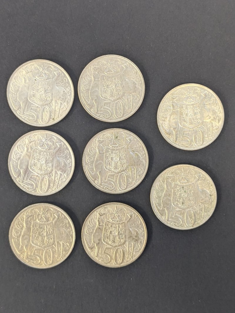 8 X 1966 AUSTRALIAN ROUND 50-CENT COINS